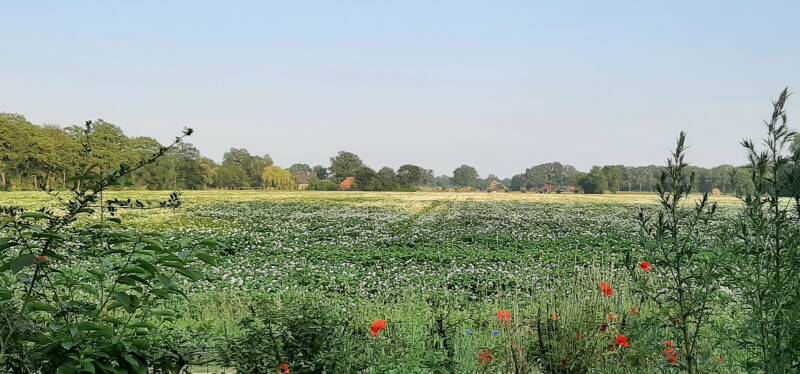 De ochtendzon is op plaats 6, 7, 8 en 9 het beste te vangen. Hier komt in de middag de schaduw van het bos erachter.